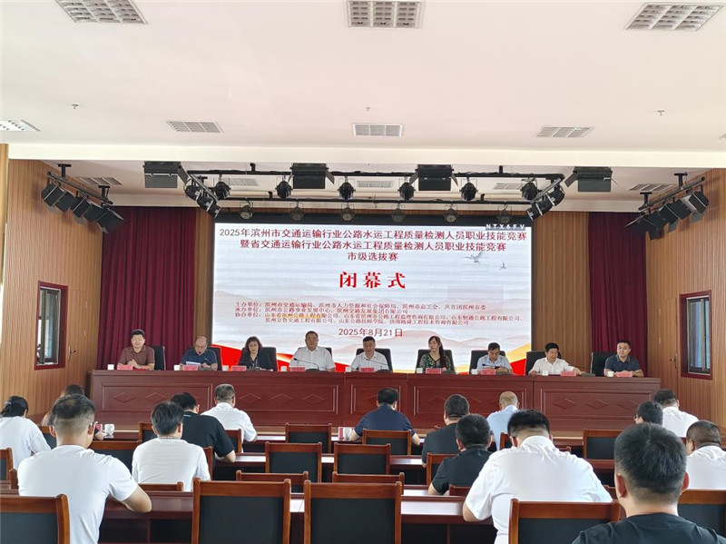 8月21日上午,2025年濱州市交通運(yùn)輸行業(yè)公路水運(yùn)工程質(zhì)量檢測(cè)人員職業(yè)技能競(jìng)賽暨省交通運(yùn)輸行業(yè)公路水運(yùn)工程質(zhì)量檢測(cè)人員職業(yè)技能競(jìng)賽市級(jí)選拔賽閉幕式在公司七樓會(huì)議室舉辦。市人力資源和社會(huì)保障局黨組副書記、市公共就業(yè)和人才服務(wù)中心主任顏波,共青團(tuán)濱州市委副書記丁寶冬,市交通運(yùn)輸局黨組成員、副局長(zhǎng)曹斌,市交通運(yùn)輸局黨組成員、四級(jí)調(diào)研員鐘軍,公司黨委副書記、總經(jīng)理、董事劉漢興及市交通運(yùn)輸局、市總工會(huì)有關(guān)部門及公司權(quán)屬工程公司、監(jiān)理公司有關(guān)負(fù)責(zé)同志參加活動(dòng)。