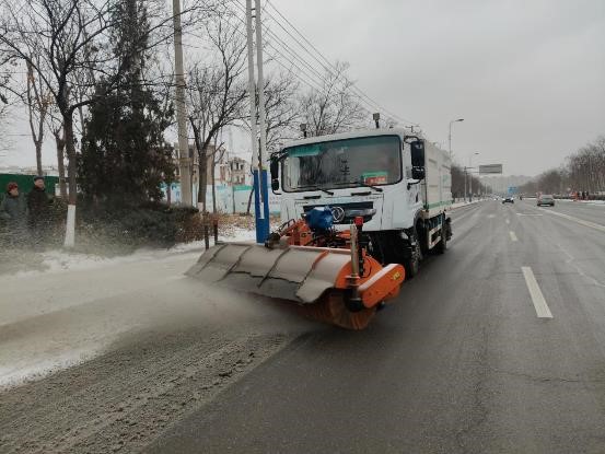 公司迅速集結(jié)23名工作人員,調(diào)配除雪車(chē)、融雪劑灑布車(chē)各1臺(tái),前往渤海十三路(黃河一路至黃河二路段)開(kāi)展開(kāi)除雪作業(yè)。